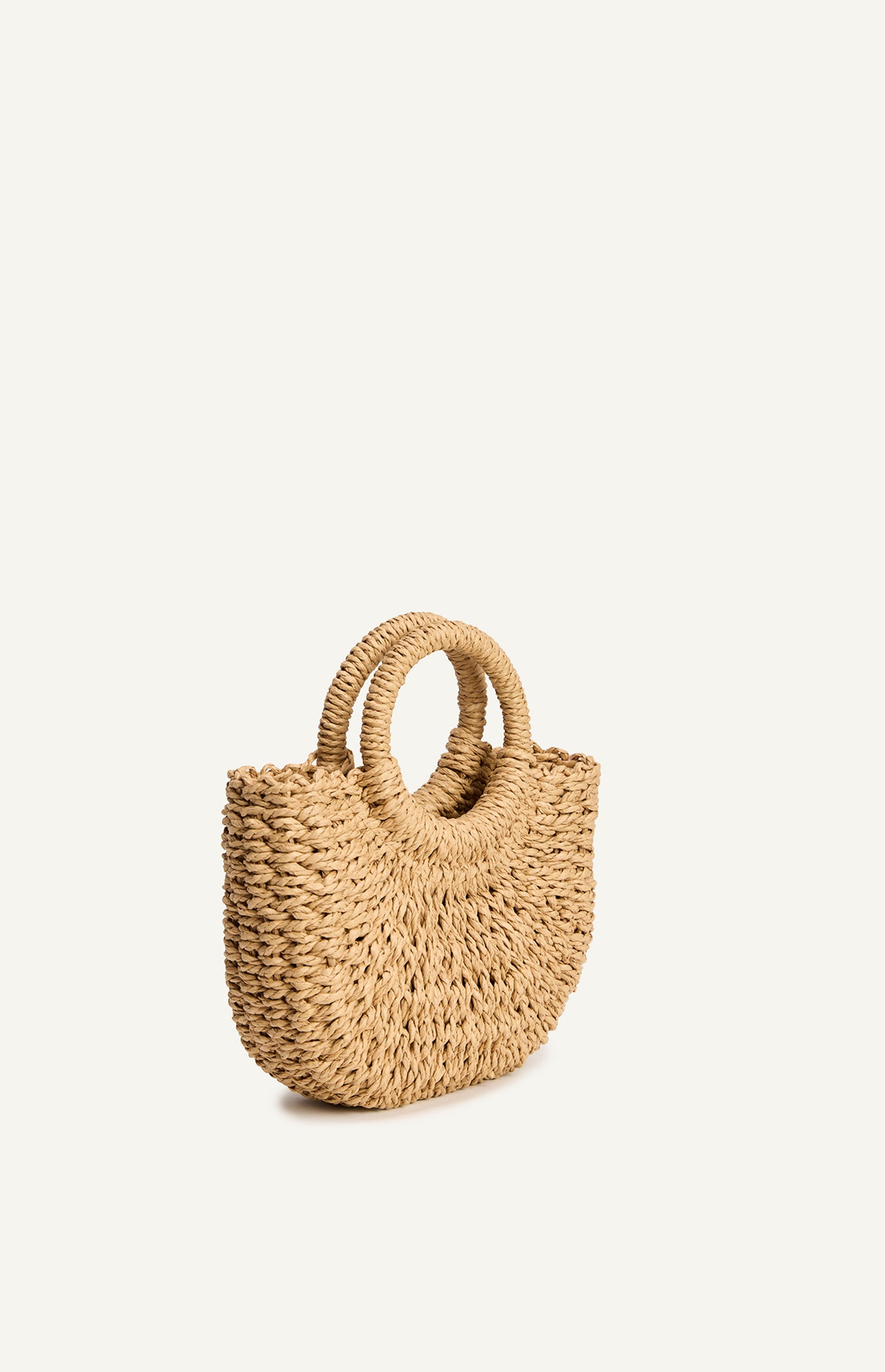- Mini tote shape with circular structured handles